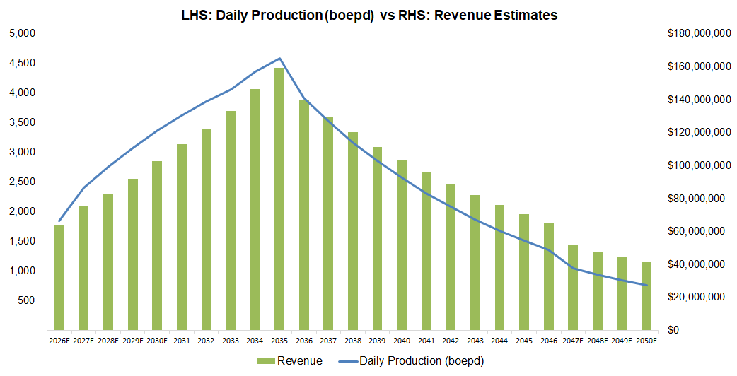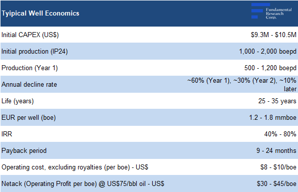 At ~200 boed on average, each well is anticipated to remain productive for ~20 years