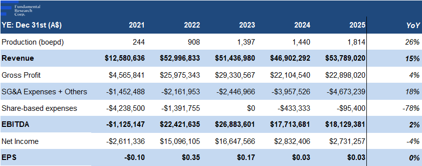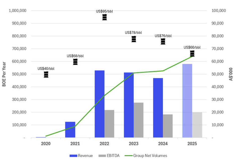 Production increased from 244 boepd in 2021, to 1,814 boepd in 2025