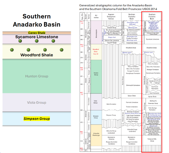 Additional upside exists in the overlying Caney Shale (~5,000–7,000 ft deep), and the deeper Simpson group (>9,000–12,000+ ft), which are not included in current reserves