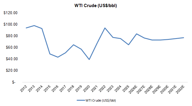 Consensus near and long-term price forecasts remain well above the 10-year average of $64/bbl, suggesting a supportive pricing backdrop for stronger netbacks, and improved economics