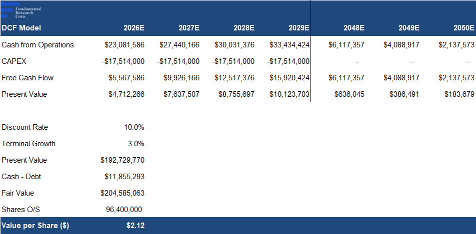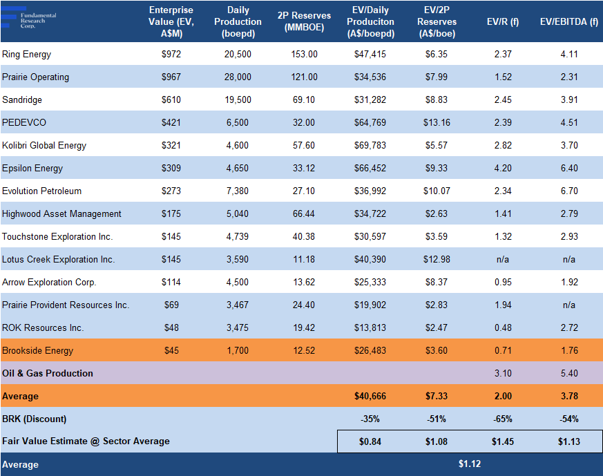 Our DCF valuation on BRK is $2.12/share, based solely on current reserve estimates, including potential cash flows from the nine producing wells, and 19 undeveloped targets